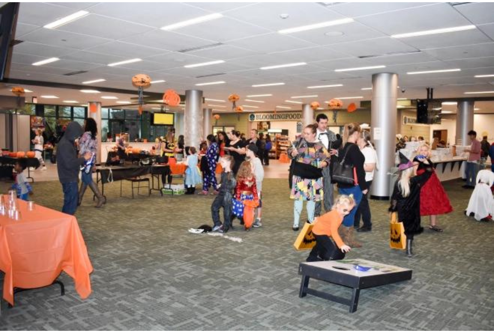 Ivy Tech Community College Bloomington hosted Family Fright Night for students and families on Wednesday evening, Oct. 31. More than 350 guests attended. Trick-or-treaters snacked on candy and pizza and enjoyed activities including a bounce house, glow-in-the-dark mini golf, football toss, cornhole, skee-ball, pop-a-shot basketball, a photo booth and more. Guests created their own ghost lollipops and enjoyed other arts and crafts including a “make your own slime” station, a coloring table, and more.