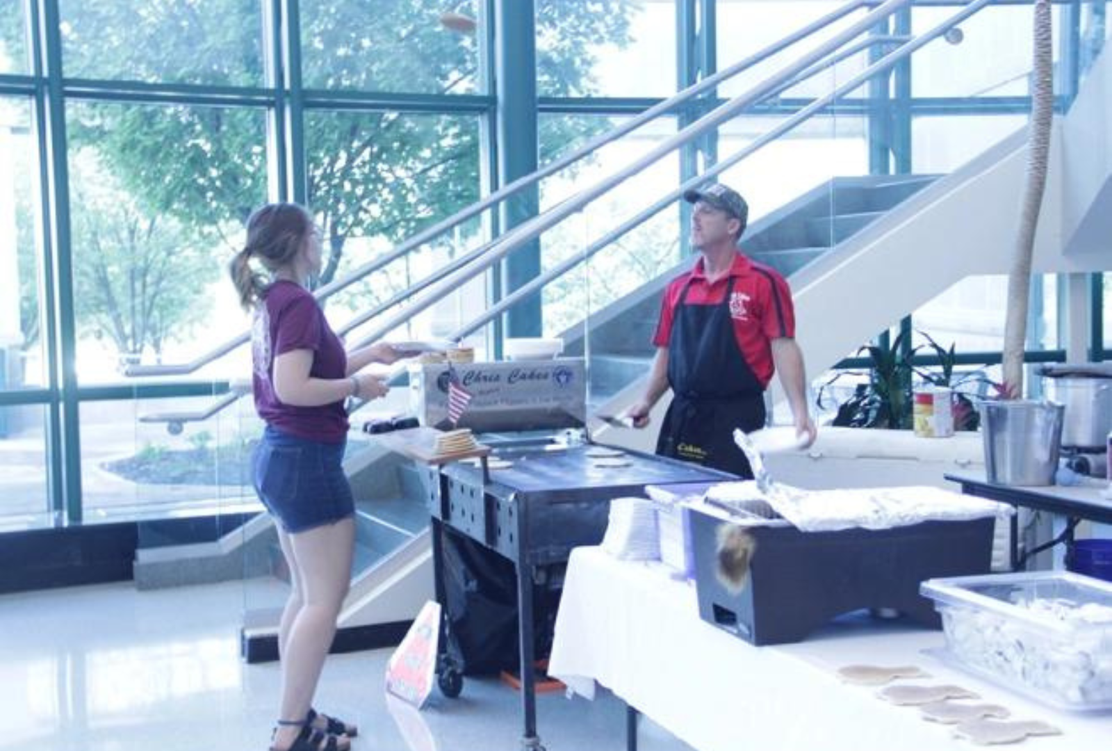 On Thursday morning, Chris Cakes greeted students with a free pancake breakfast and pancake flipping. Many other breakfast items were available. On Thursday during lunch hours, a mathematics cultural event with food and music was held in the library to teach students how math is taught and used in other cultures. Students also enjoyed a virtual reality gaming station in the student commons. A family movie and activity night was held on Thursday evening in Shreve Hall, and students enjoyed a screening of Solo and free pizza.