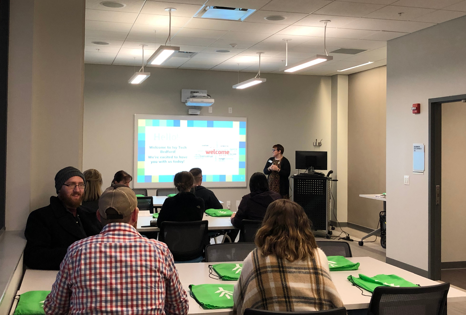 BEDFORD – Ivy Tech Community College hosted a community open house at the new StoneGate Arts & Education Center located downtown Bedford on Thursday, Jan. 10 with nearly 35 visitors in attendance. While the community enjoyed refreshments, they learned that StoneGate offers new technologies to students, such as live online synchronous video capabilities. Live online classes enable students to take classes in Bedford that are held at Ivy Tech Bloomington’s main campus.