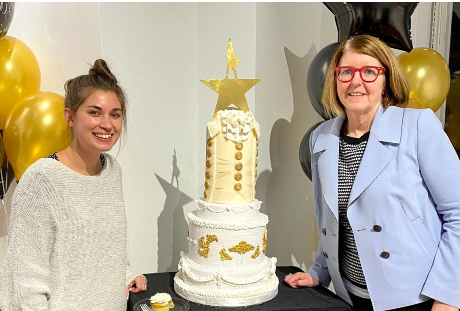 Organizers Jordan Ferguson and Trina Sterling with the Ivy Tech Culinary Program’s Hamilton themed birthday cake