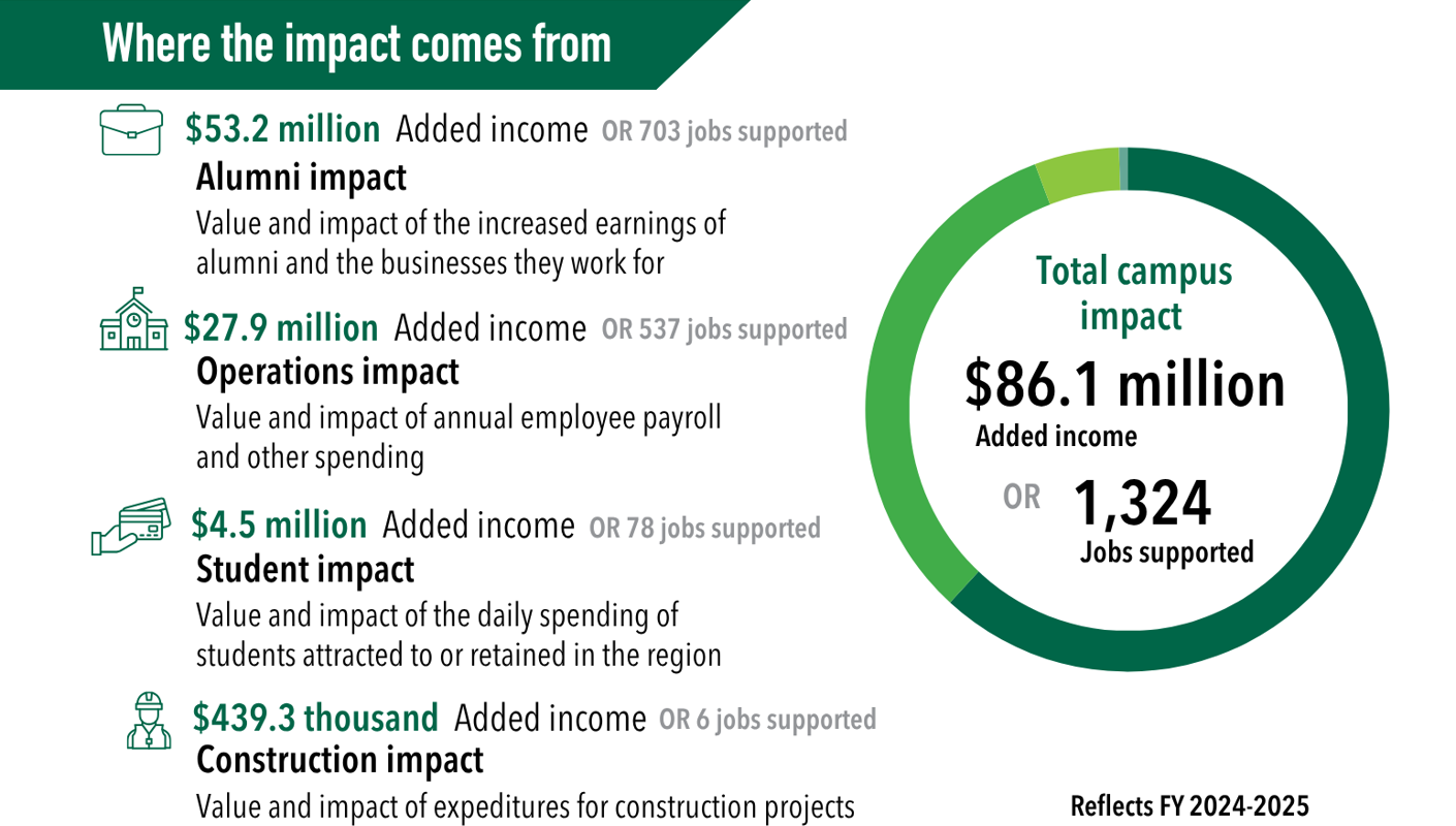 - Campus operations: $27.9 million added income or 537 jobs supported