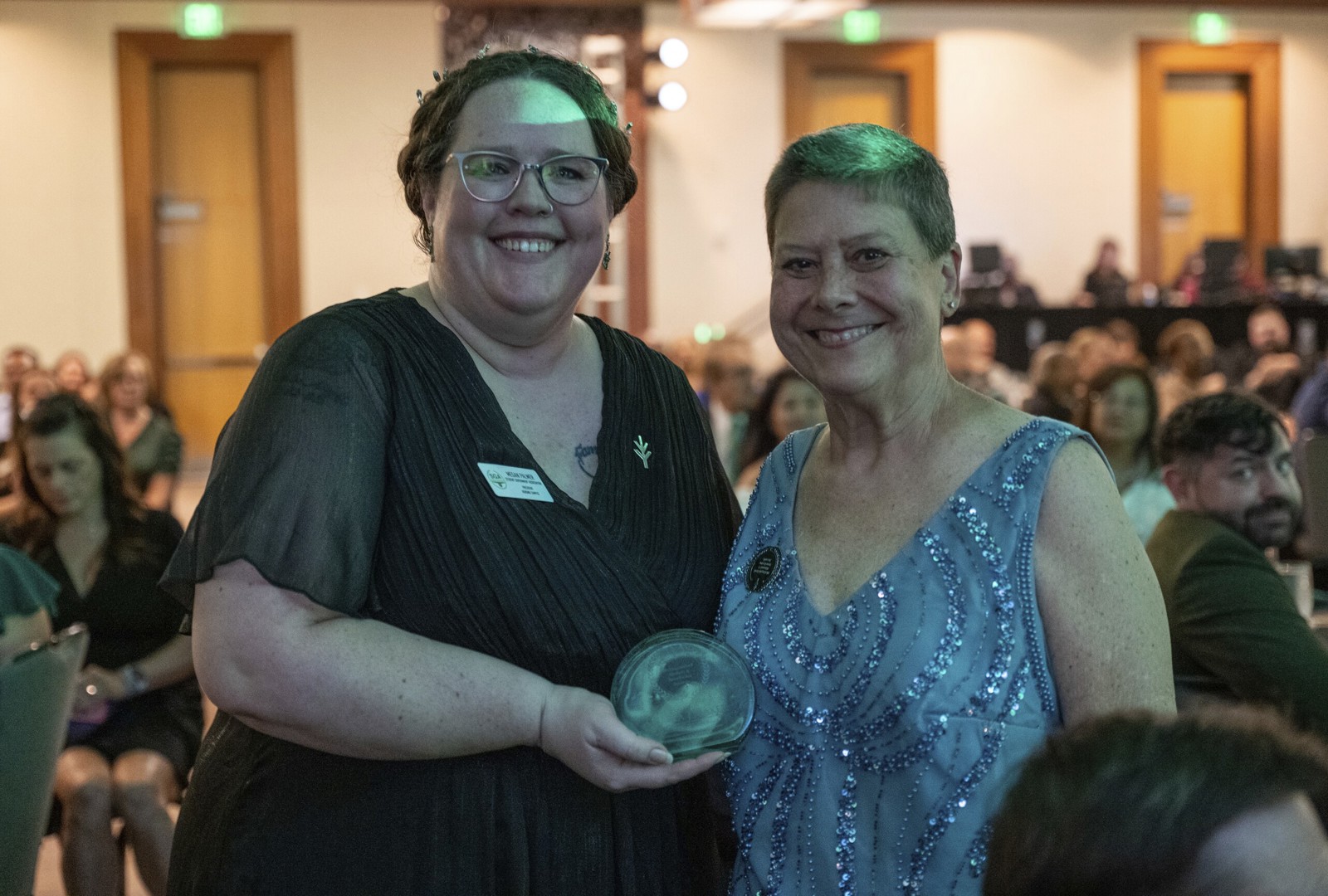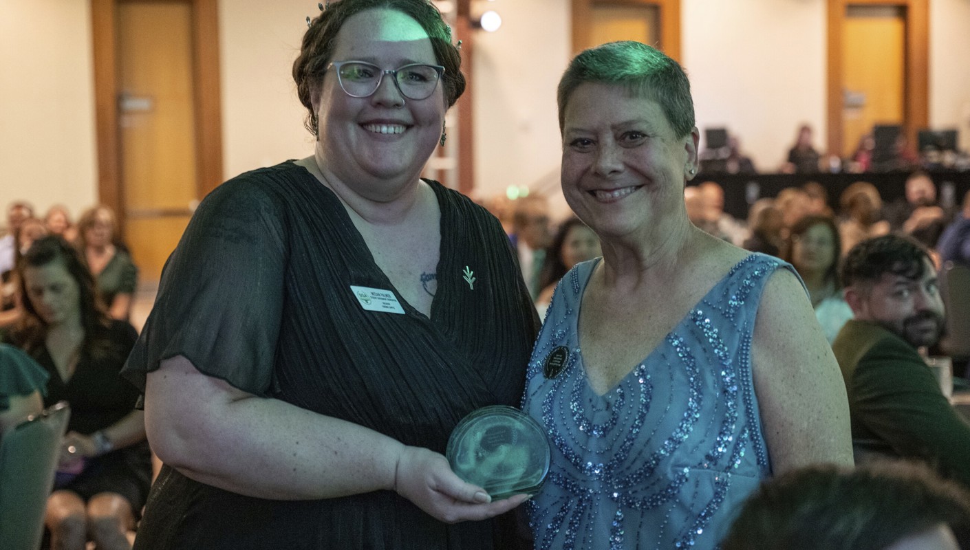 Kathy Reed and Amanda Whipple accepted the award on behalf of the Independent Order of Odd Fellows of Indiana.