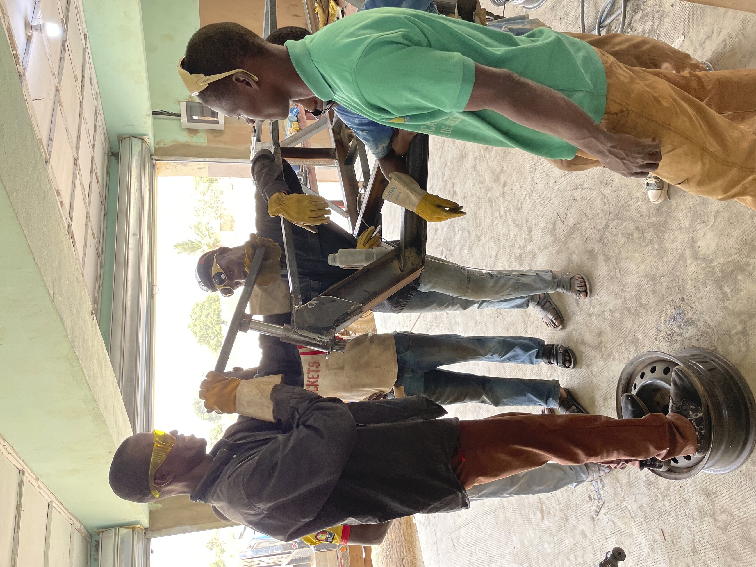 Cox spent the next three years redesigning the vehicle and developing repeatable, low-cost manufacturing processes that could be taught to others around the world. His work culminated in 2022 with his first BUV training trip to Benin, where he taught a small group of students to assemble the redesigned vehicle from scratch—even though none of them spoke English.