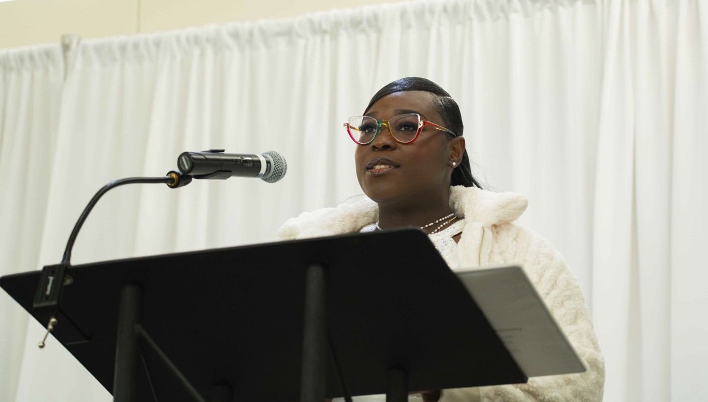 Sarah BienAime, a first-generation college graduate and daughter of Haitian immigrants, delivered a powerful address about perseverance and community.