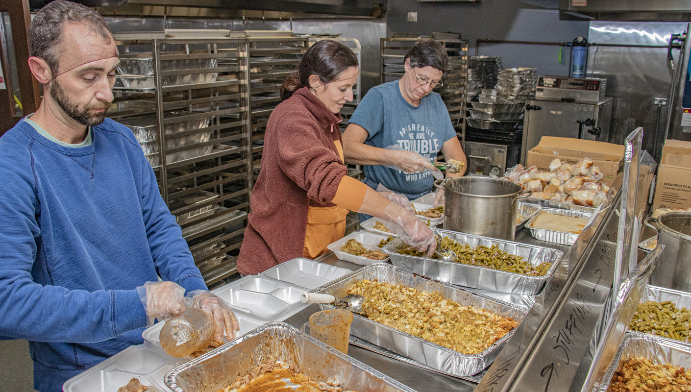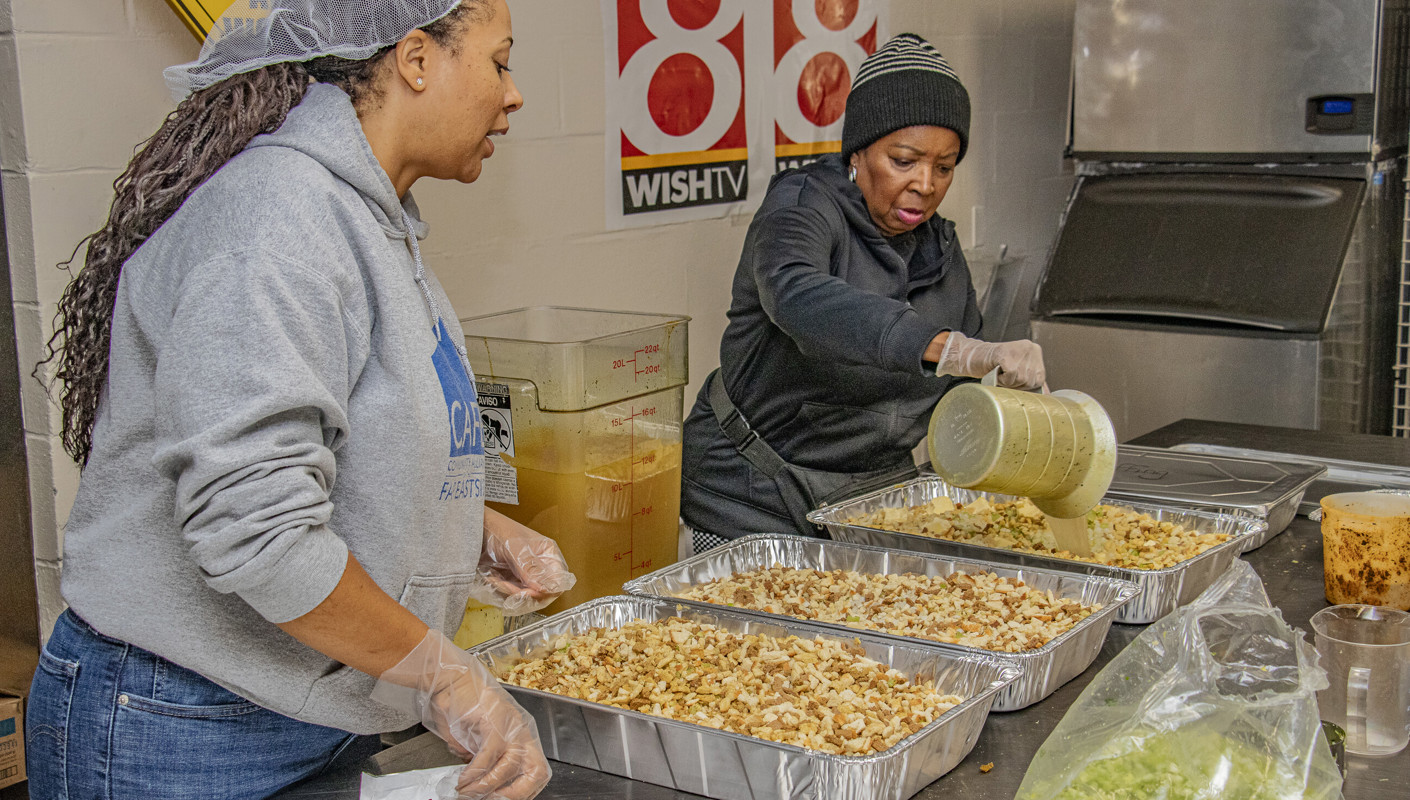 Chef Jenni Schouppe, program chair for the Ivy Tech Indianapolis School of Culinary Arts and Hospitality Management, and Chef Ricky Hatfield, an adjunct faculty member, were on-site at CCCI to help on Thanksgiving Day. Chef Hatfield has assisted Mozel Sanders for years.