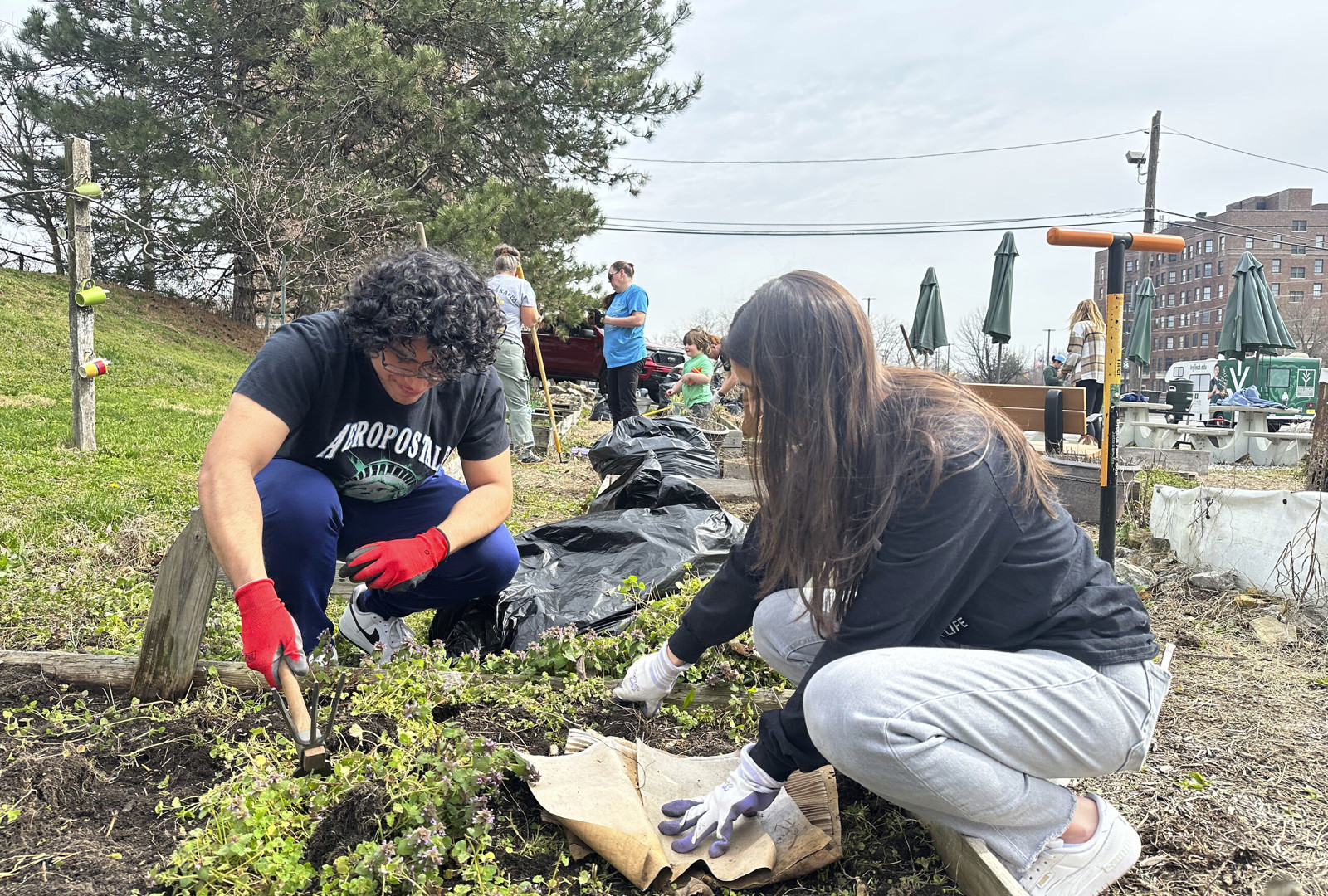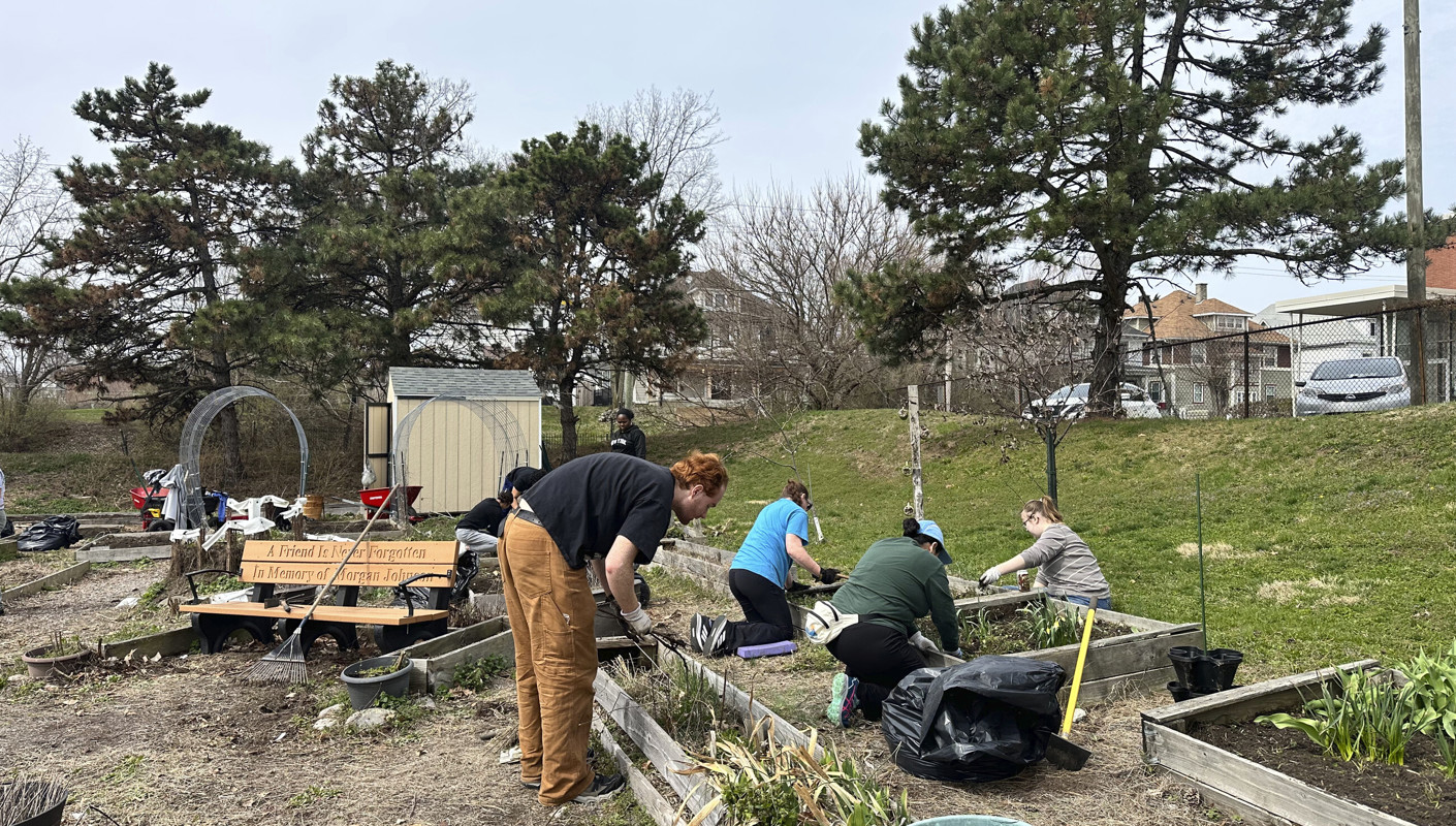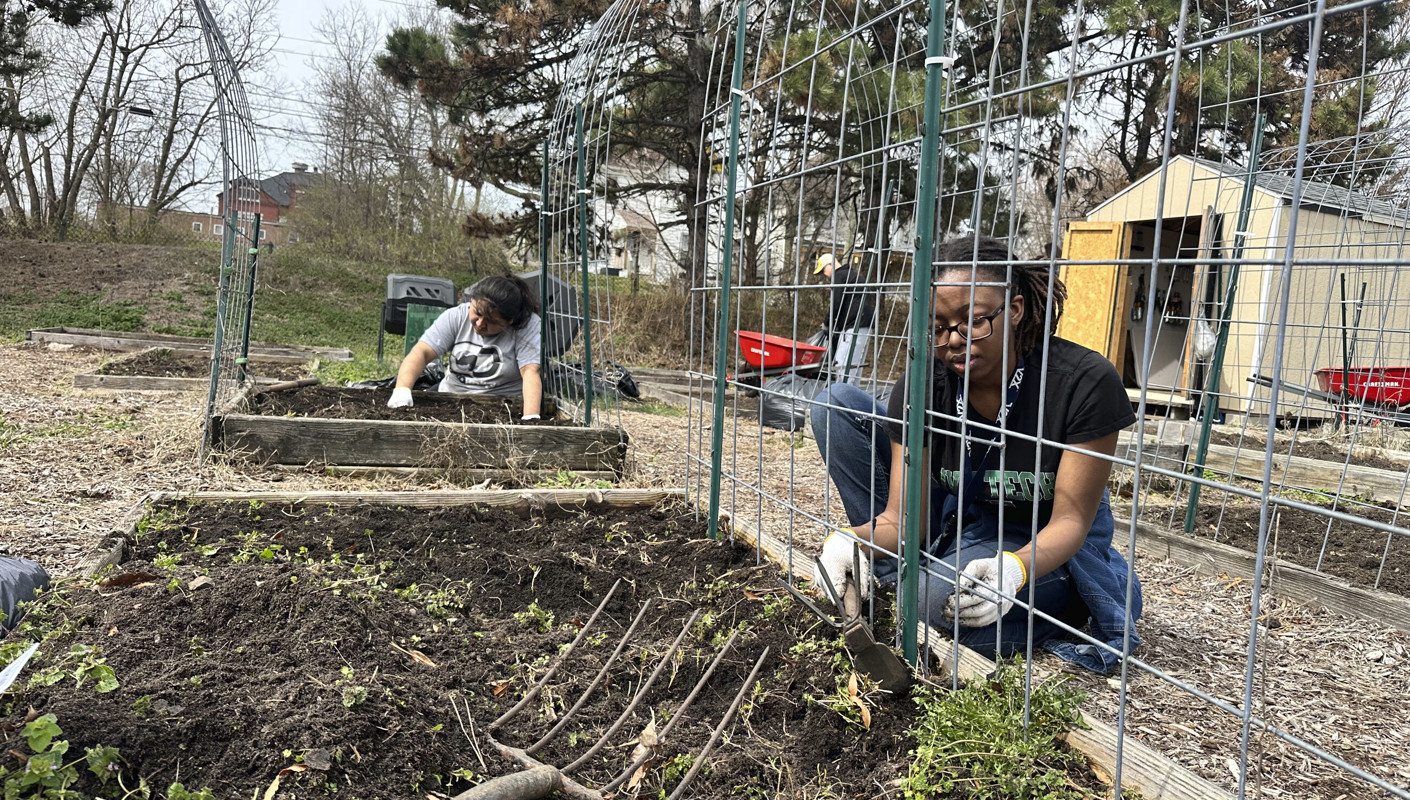 Students, faculty, and staff rolled up their sleeves to support the Ivy Tech Indianapolis campus garden during the Soil, Sweat, & Suds Community Garden Service Project, organized by members of Alpha Upsilon Tau, the campus chapter of Phi Theta Kappa (PTK).