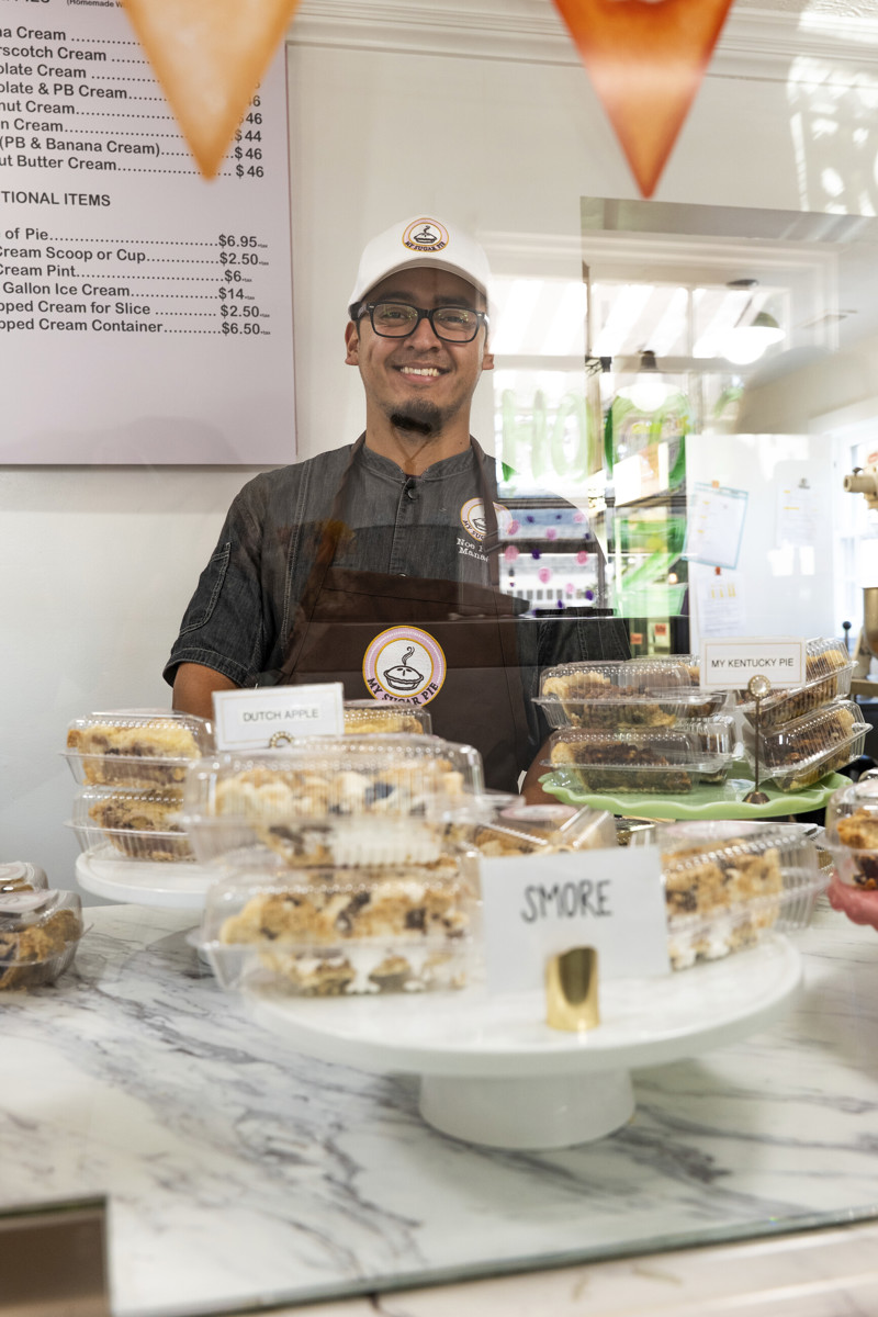 When he arrived, he worked with Kelly Maucere, the founder and owner of My Sugar Pie, to set goals for the experience, including developing a new pie recipe for the shop and applying the recipe costing techniques he had learned in class.