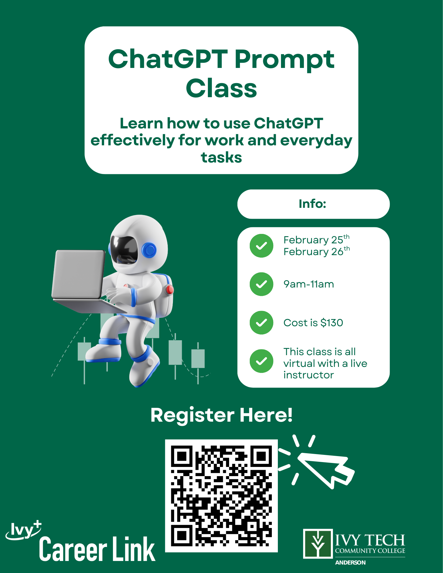 Ivy Tech’s skills training classes can help you prepare for an industry certification, learn new skills for your employer, or satisfy professional needs. Classes are open to the community and you don’t need to pursue a degree or apply to Ivy Tech to take them.