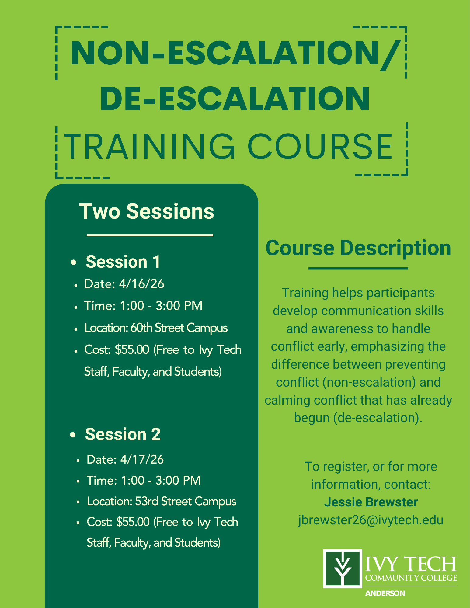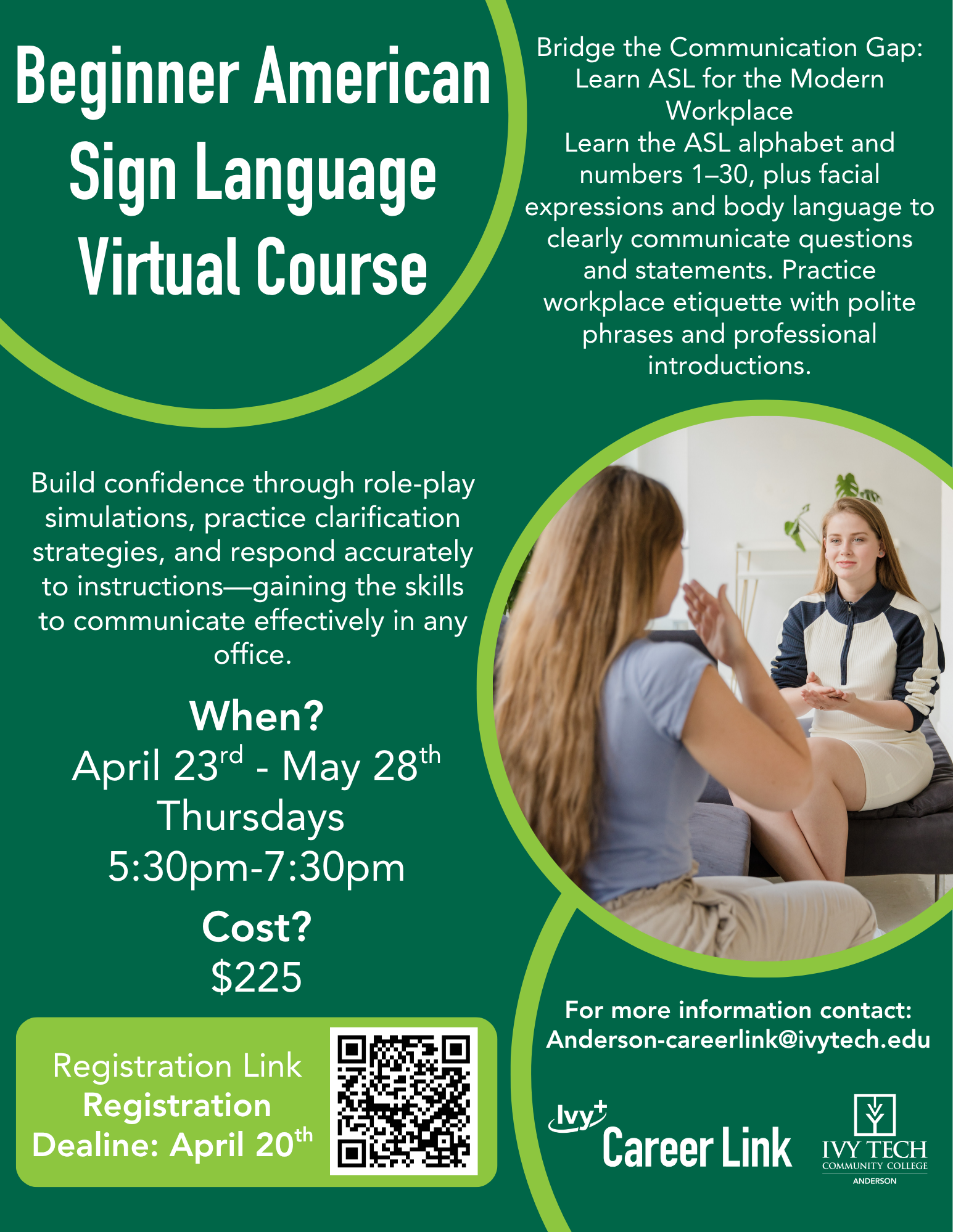 If you're not yet an Ivy Tech student, contact the Ivy Tech Anderson Campus Admissions Office at (765) 252-4645 or at askanderson@ivytech.edu and we'll be happy to help.