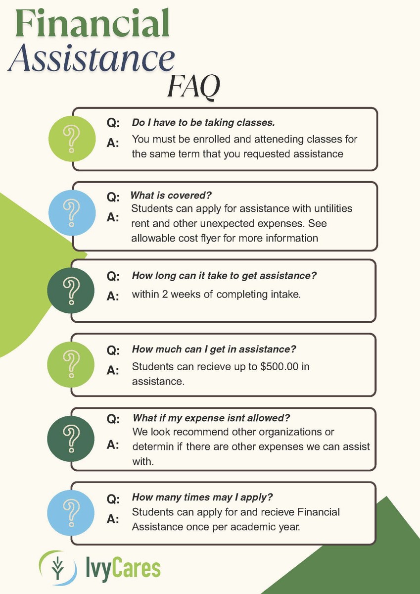 Process: Once the Emergency Aid request form has been completed, please allow up to 5 business days to receive an update on your application from an Ivy Care’s representative. All responses will be sent to your student email address. An Ivy Care’s representative will contact you if more information is needed for the request.