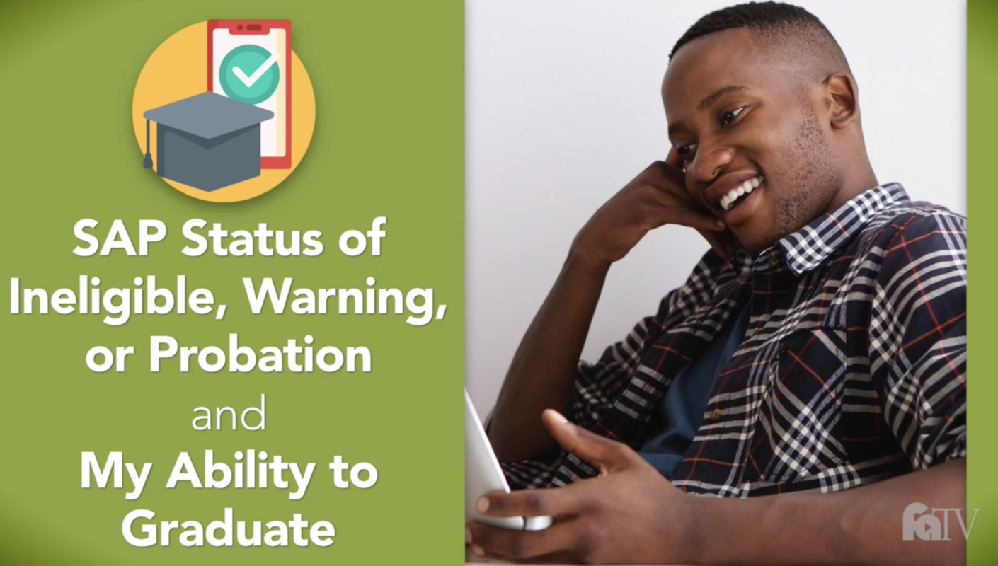 SAP Status SAP Status Description Eligible for Financial Aid? Good Student meets all SAP standards (GPA, Completion Rate and Maximum Time Frame) Yes Warning Student failed to meet at least one SAP Standard (GPA and/or Completion Rate) and is given one semester in which to improve to meet the SAP standards & return to Good standing. Yes Terminated Student was previously in Warning status and failed to regain Good standing, or student will not be able to complete program within the 150% limit for Maximum Time Frame. Students who have extenuating circumstances may file an appeal. to have their Financial Aid eligibility reviewed. Students may also self-pay and continue to enroll to attempt to regain Good standing or complete program. No Probation Student is on approved SAP appeal. In order to remain eligible for financial aid, the student must the following conditions or regain Good standing: